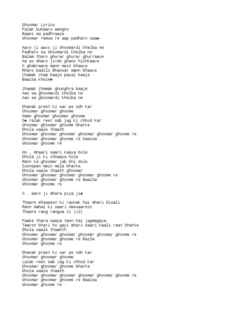 Lyrics Of Ghoomar Song In English / intro घूमर रमवाने आप पधारो सा.