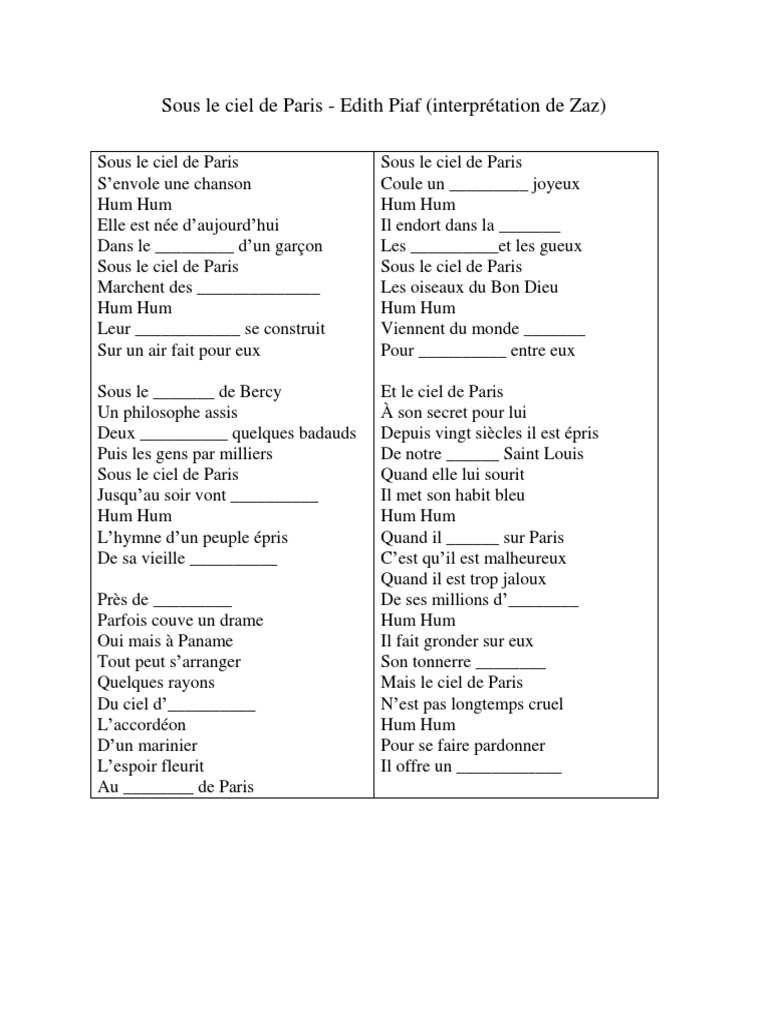 Sous Le Ciel De Paris Lyrics Edith Piaf / Sous le ciel de paris for later.